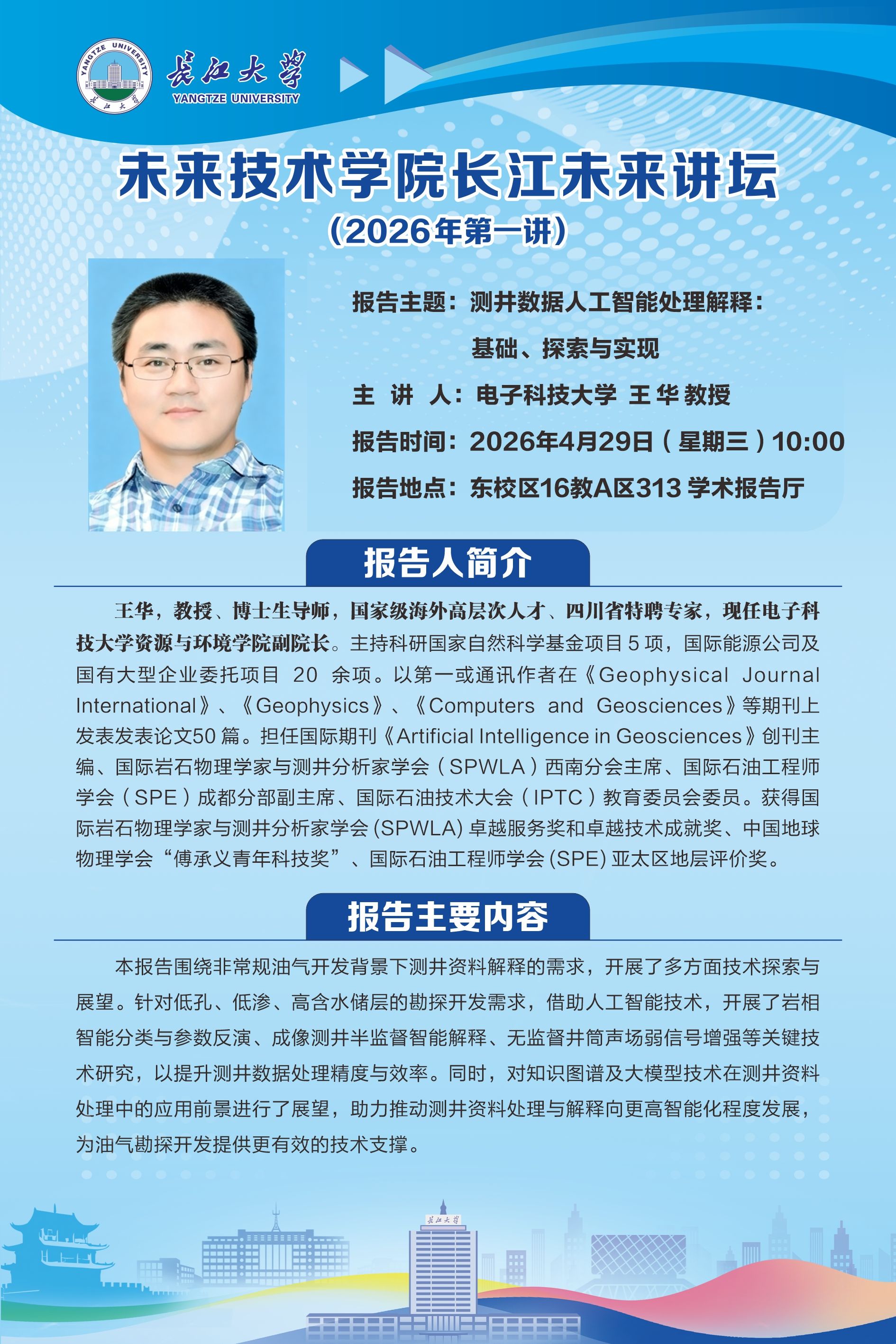 长江未来讲坛(2026年第一讲):测井数据人工智能处理解释:基础、探索与实现
