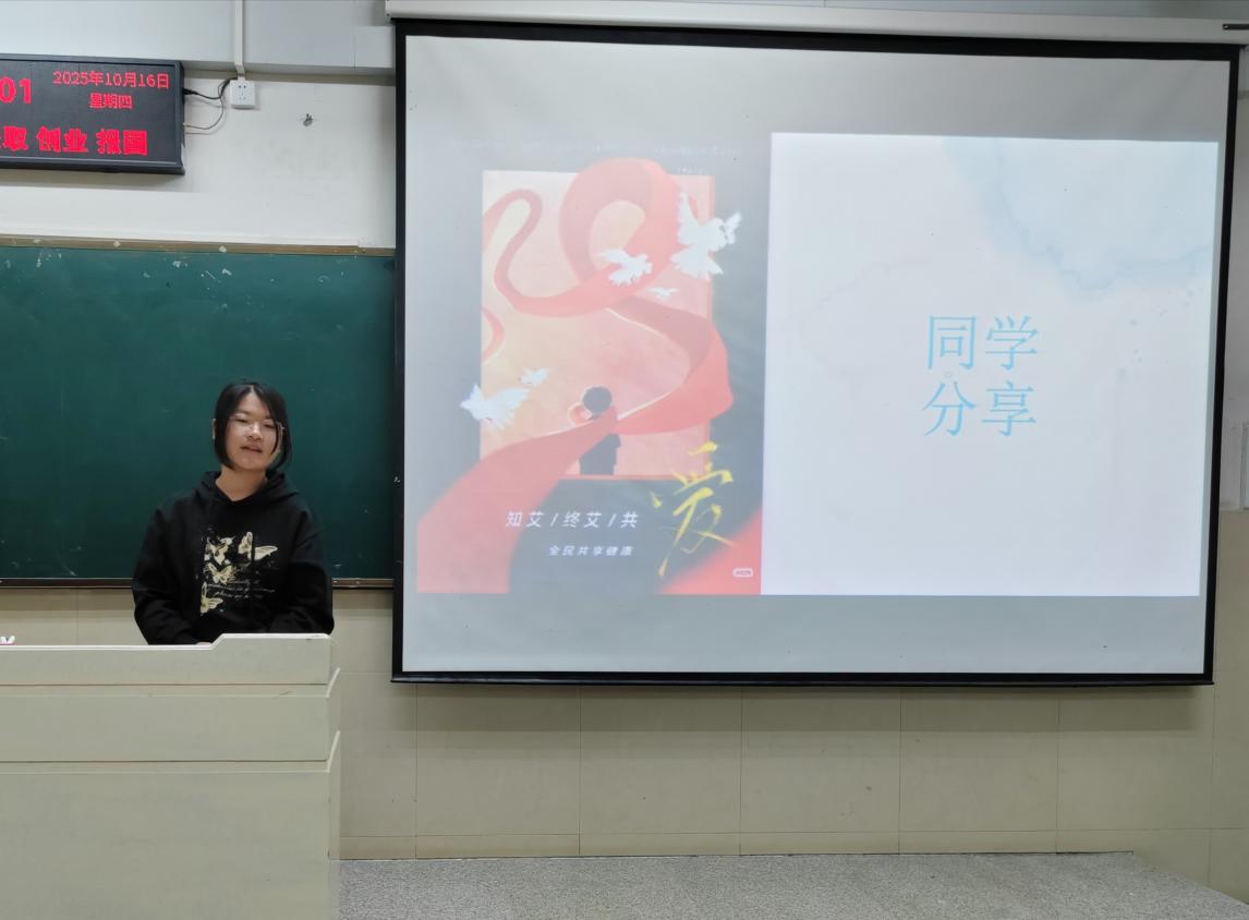 首先,她科普了基础的生理卫生知识,让同学们对自己的身体有了更多的了解。紧接着,讲座进入“认识HIV与艾滋病,科学预防”环节。陈秋立同学向同学们系统介绍了梅毒和艾滋病的传播途径、危害以及现代医学在治疗方面取得的进展。她特别着重澄清了日常接触不会传播艾滋病的科学事实,旨在消除不必要的恐惧与歧视。